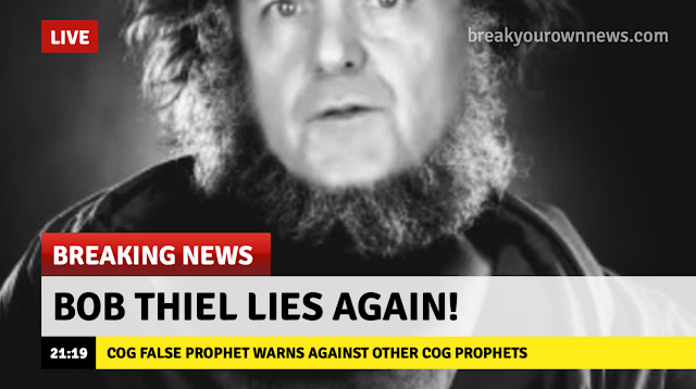 Today our great savior of Africa and end time Amos, Elijah, Elisha, Joshua, and the only doubly-blessed prophet of God in human history is back telling us that the end is not here (at least not for 3 or more years) and that Satan is so angry with him that there are malcontents out there that are imitating him and his greatness. So be warned, you could be deceived by other COG false prophets trying to be like him, Bob Thiel, the epitome of prophethood greatness!